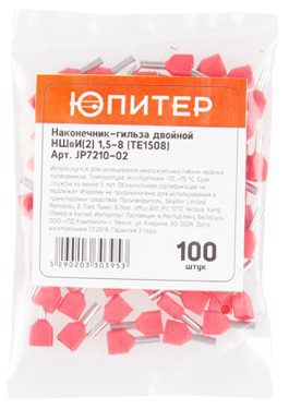 Кабельный наконечник двойной ЮПИТЕР НШвИ(2) 1,5-8 TE1508 100 штук (JP7210-02) предназначен для оконцевания методом опрессовки гибких многопроволочных проводников и является современной альтернативой обязательному обслуживанию многожильных проводников при присоединении к клеммам.