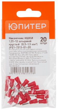 Кабельный наконечник ЮПИТЕР НШКИ 1,25-12 1,5 мм2 20 штук (JPZ1-7213-01-20) предназначен для оконцевания методом опрессовки гибких многопроволочных проводников и является современной альтернативой обязательному обслуживанию многожильных проводников при присоединении к клеммам.