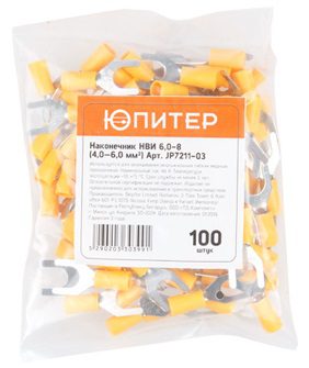 Кабельный наконечник ЮПИТЕР НВИ 6,0-8 6,0 мм2 100 штук (JP7211-03) предназначен для оконцевания методом опрессовки гибких многопроволочных проводников и является современной альтернативой обязательному обслуживанию многожильных проводников при присоединении к клеммам.