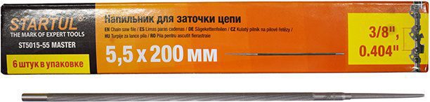 Напильник для заточки цепей d 5,5 мм STARTUL MASTER (ST5015-55) предназначен для пильных цепей с шагом 0.404″, 3/8″. Длина напильника: 200 мм. Продается по одной штуке.