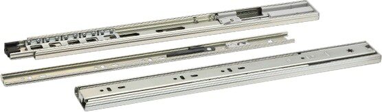 Направляющая шариковая STARFIX полного выдвижения 400х45 мм с доводчиком 2 штуки (SMF-13003) имеет толщину стали 1.5 мм и рассчитана на нагрузку 35 кг. Телескопический механизм обеспечивает полный доступ к пространству ящика, а ход мягкий и бесшумный. Система фиксации доводчика работает бесперебойно и имеет двойную защиту от случайного соскакивания.