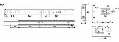 Направляющая шариковая с системой плавного закрытия h=45 мм, L-550 мм AKS PLUS (10285) – мебельная фурнитура, которая используется для монтажа выдвижных ящиков. Представляет собой шариковый подшипник с телескопической структурой с функцией сброса – новый вид механизма с функцией бесшумного самодоката.