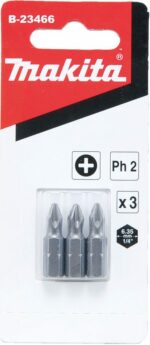 Бита для шуруповерта PH2 25 мм 3 штуки MAKITA C-form (B-23466) – стандартная бита с крестообразным шлицем. Хвостовик шестигранный 1/4″ C-form (с проточкой для пружинного кольца).