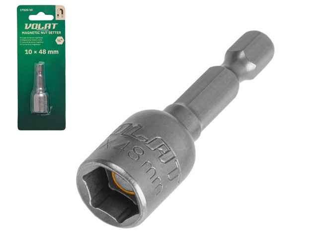 Бита для шуруповерта торцевая магнитная 10х48 мм ВОЛАТ (17520-10) предназначена для удобного монтажа и демонтажа болтов, кровельных саморезов и шурупов с шестигранной головкой. Изготовлена из прочной углеродистой стали, что обеспечивает надежность и долговечность инструмента. Бита имеет внутренний шестигранник, который обеспечивает хорошую передачу крутящего момента. Величина посадки равна 1/4″, что позволяет использовать биту с различными моделями шуруповертов. Благодаря магнитному наконечнику, бита легко удерживает крепежные элементы, что облегчает работу и предотвращает их случайное падение.