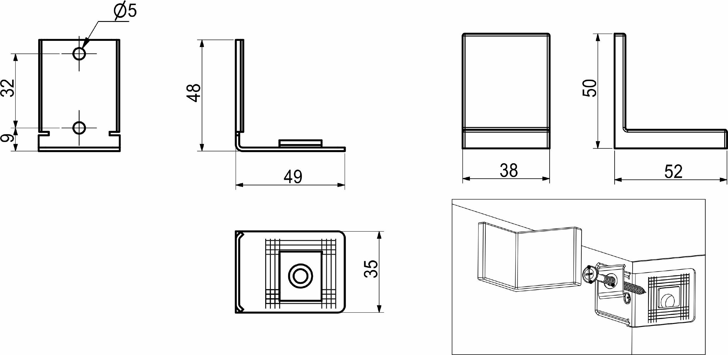 Навес регулируемый AKS 3-составной орех темный (73642) предназначен для крепления корпусов навесных ящиков к стене. Также может использоваться для крепления стоящих на полу элементов мебели к стене, тогда навес выполняет функцию предотвращения опрокидывания элемента мебели. Состоит из трех элементов: уголок, фиксирующая шайба и декоративная крышка. Нагрузка на пару – 50 кг. Регулировка по вертикали и горизонтали в пределах 3-4 мм за счет смещение фиксирующей шайбы.