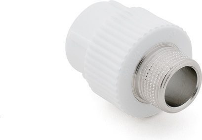 Ниппель ПП 25х3/4″ комбинированный с наружной резьбой, белый РосТурПласт (10665) применяется в системах холодного и горячего водоснабжения. Закладные детали изготовлены из качественной латуни с пониженным содержанием свинца. Наружная резьба составляет 3/4”. Выдерживает давление до 25 бар.