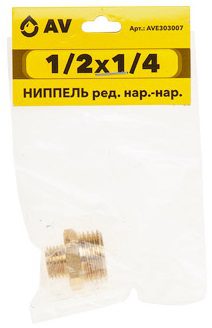 Ниппель латунный редукционный наружная-наружная 1/2″X1/4″ AV ENGINEERING (AVE303007) применяется для бессварочного соединения труб в быту и присоединения дополнительных приборов, бытовой техники и др. к существующей трубопроводной системе, работающей в условиях неагрессивных сред.