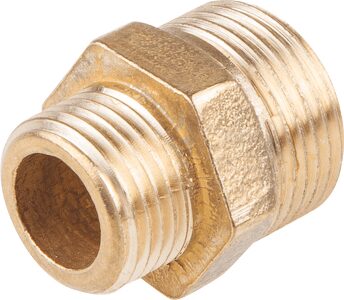 Ниппель латунный 1/2″х3/8″ с наружной резьбой ЦВЕТЛИТ (ЦРБ0128) предназначен для бессварочного соединения труб в быту и присоединения дополнительных приборов, бытовой техники и д.р. к существующей трубопроводной системе, работающей в условиях неагрессивных сред (вода, в том числе и питьевая, и др.) при температуре рабочей среды до 200°С и номинальном давлении до 1,0 МПа. Материал: латунь ЛЦ 40 Сд или ЛЦ40С.