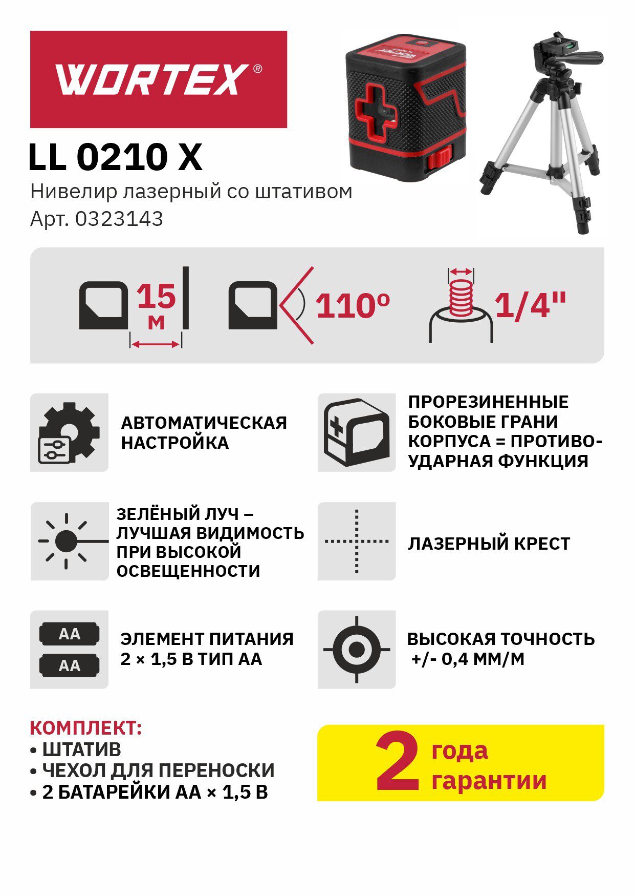 Уровень лазерный WORTEX LL 0210 X (0323143) — компактный кросс-линейный нивелир для простых задач по построению плоскостей, отличается зеленым диодом, позволяющим работать в условиях высокой освещенности. Оснащен функцией автоматической настройки имеет прорезиненные боковые грани корпуса, что выполняет противоударную функцию. Есть возможность фиксации лучей. Поставляется в комплекте со штативом 65 см.