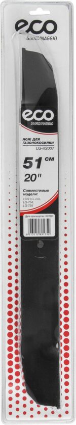 Нож для газонокосилки 51 см ECO (LG-X2007) является сменным ножом-лезвием для колесных газонокосилок ECO LG-733, LG-734, LG-735 и LG-810. Упакован в блистер с подвесом.