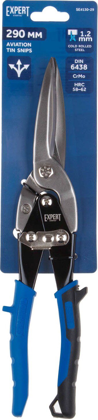 Ножницы по металлу 290 мм STARTUL Expert (SE4130-29) предназначены для точного прямого реза листового металла. Материал режущих губок: CrMo. Твердость режущих губок: 58-62 HRC. Максимальная толщина реза листового металла 1,2 мм. Рукоятки двухкомпонентные, выполнены из сочетания пластика и резины.