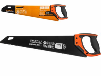 Ножовка по дереву 500 мм 11 TPI STARTUL Profi (ST4250-50) предназначена для продольного и поперечного пиления древесины и ПВХ. Полотно изготовлено из инструментальной углеродистой стали 65Mn и покрыто тефлоном. Двухкомпонентная рукоятка из ударопрочного обрезиненного пластика крепится к полотну тремя винтами.