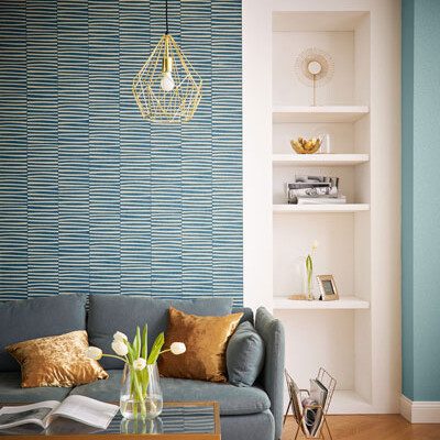 Обои виниловые RASСH Glam (542066) с органичным и стильным дизайном с классическими полосами и мерцающими искрами. Сочетание синего и мерцающего серого придаст интерьеру контраст и неповторимость.