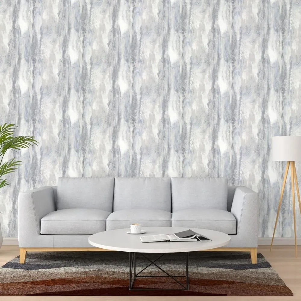 Благородные холодные тона символизируют прохладу и свежесть, а абстрактный фактурный рисунок передаёт динамику течения.