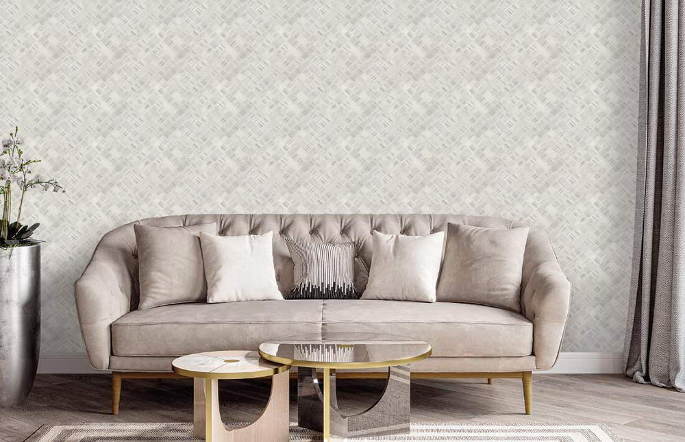 Обои выполнены в современном стиле. Они украшены оригинальным рисунком, который имитирует текстильную поверхность. Геометрический узор выглядит лаконично и ненавязчиво. Обои гармонично сочетаются с любыми предметами интерьера. Они станут отличным фоном для мебели, декоративных элементов и аксессуаров.