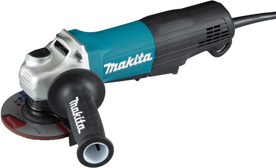 Шлифмашина угловая (болгарка) MAKITA GA 4550 R (GA4550R) используется для шлифовки, резки и очистки металлических изделий. Съемная дополнительная рукоятка позволяет работать двумя руками. Встроенная система защиты от непреднамеренного пуска. Плавный пуск сводит к минимуму толчки при запуске и обеспечивает плавный запуск инструмента. Надежный двигатель мощностью 1 300 Вт обеспечивает обороты 11 000 об/мин для высокой выходной мощности. Новый кожух, не требующий инструментов (тип скользящего рычага).