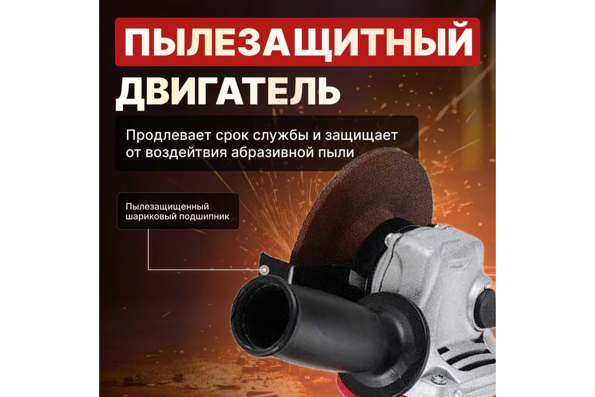 Шлифмашина угловая (болгарка) WORTEX AG 1207-6 (0333364) оснащена надежным пылезащищенным двигателем, что значительно продлевает срок её службы и защищает от воздействия абразивной пыли.
