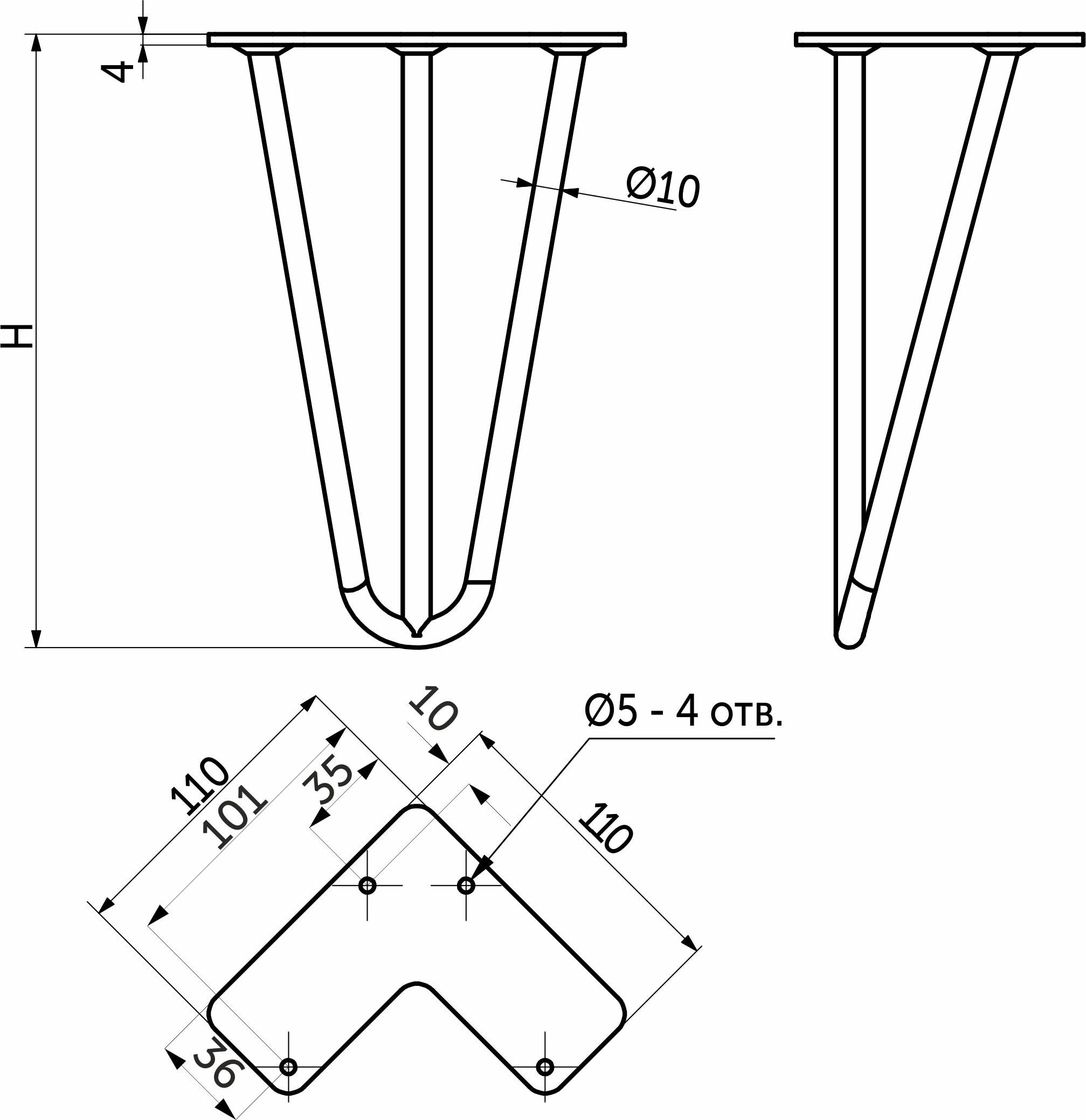 Опора мебельная AKS Flash угловая косая h100 черная (73293) выполнена из металлического прута d10 мм. Используется для увеличения высоты мебели.