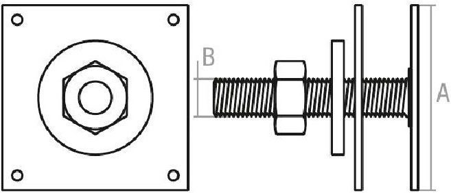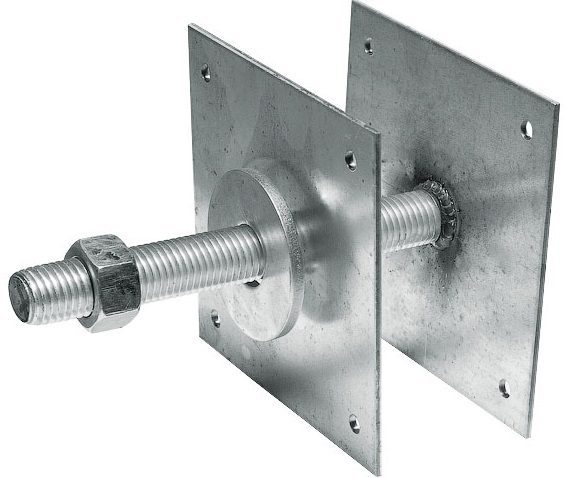 Опора регулируемая 100 мм М24 STARFIX (SMP-31144-1) представляет собой две квадратные металлические пластины, к одной из которых приварена резьбовая шпилька M24. Вторая пластина при помощи гайки может свободно перемещаться вдоль шпильки. Таким образом достигается вертикальное регулирование балки или бруса, прикрепленных ко второй пластине. Опора изготовлена из стали и оцинкована.