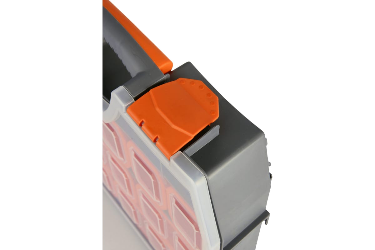 Органайзер оснащён боковыми замками и защёлками на корпусе, позволяющими скреплять однотипные органайзеры вместе, создавая систему хранения. За счёт загибов на защёлках органайзер легко открывается в перчатках.