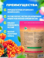 Удобрение ОРГАНИК МИКС Костная мука 850 г (4631145598877) – специально подготовленная для растений костная мука для применения в качестве органического источника фосфора и азота. При внесении в почву, растение получает энергию для формирования мощной разветвленной корневой системы и образования крупных бутонов, соцветий и плодов. Также применяется при пересадке саженцев для быстрого укоренения и развития корневой системы.Основные функции:1. Стимулирует развитие корневой системы.2. Увеличивает урожайность.3. Увеличивает приживаемость саженцев и рассады.4. Восстанавливает плордородие почвы.5. Пролонгированный эффект.Состав: костная мука мелкого помола из отборного сырья с повышенным содержанием фосфора. N-4%, P-15%, K-0%, Ca, Mg, S, Zn, Fe, B, Mo.Дозировки: Высадка рассады и саженцев – 20-40 г/растение; Высдка луковичных – 10 г/луковицу; Розы и цветы – 100-200 г/м²; Кустовые цветы – от 100 г/м²; Ягодные кустарники – 100-200 г/куст; Овощные – 50-100 г/м²; Плодовые и косточковые деревья – от 200 г/м²; Заправка грядок – 150-200 г/м².Периодичность внесения – 1 раз в 30-45 дней.Сезонность применения: с марта по ноябрь.Схема внесения Костная мука 850 гр.:1. Весенняя заправка грядок. При подготовке почвы, перед перекопкой равномерно рассыпать по поверхности почвы.2. Подкормка в течение сезона. При внесении удобрения в качестве подкормки рассыпать в междурядье грядок или вокруг растения и взрыхлить на глубину 5 см. и обильно полить.Помните, что костная мука разлагается долго и основную часть питания растения получает через 3-4 месяца после внесения. Поэтому рекомендуем внести дополнительно препарат “ЭМ-патока”, чтобы стимулировать развитие полезной почвенной микрофлоры и ускорить усвоение костной муки растением.