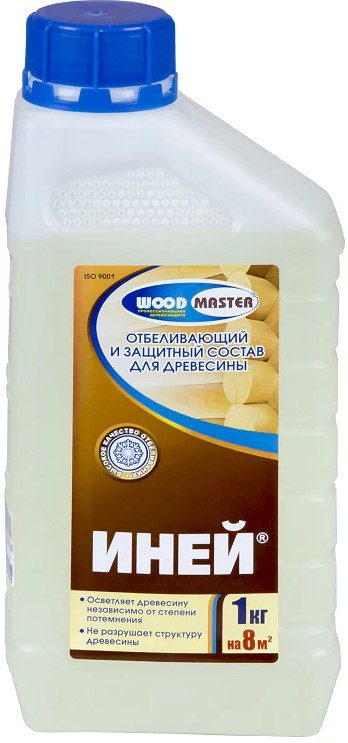 Отбеливатель WOODMASTER Иней 1 кг бережно отбеливает древесину до исходного цвета и удаляет поверхностные биопоражения. Повышает сортность пиломатериалов. Обладает противогрибковыми и дезинфицирующими свойствами. Не препятствует дыханию древесины и не ухудшает прочность и склеиваемость древесины. Не препятствует дальнейшей обработке древесины декоративными составами. Расход 120-400 г/м2 в зависимости от степени поражения древесины.