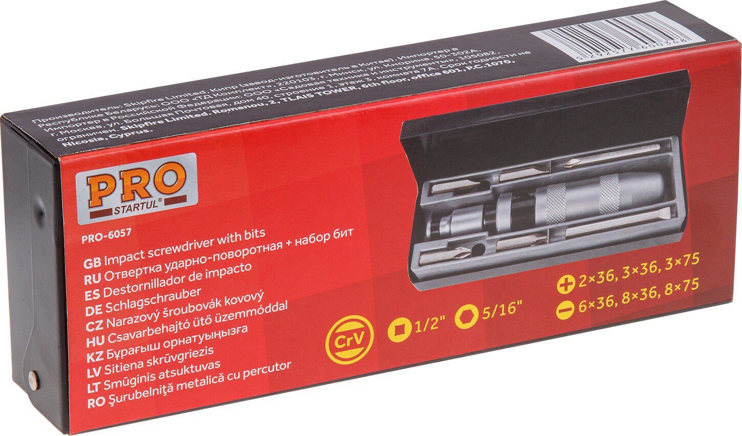 Отвертка ударно-поворотная с набором бит PRO STARTUL 7 предметов (PRO-6057) купить в сети строительных магазинов Мастак
