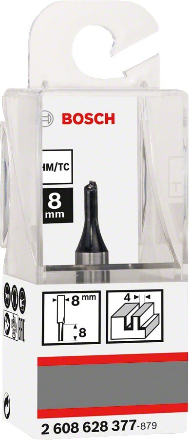 Фреза по дереву пазовая прямая 4х8х51 мм BOSCH Standard for Wood (2608628377) предназначена для универсального фрезерования, фрезерования пазов и фальцев с помощью вертикальных фрезерных машин. Для обработки заготовок правильной или произвольной формы. Пазовая фреза Standard for Wood обеспечивает высокую эффективность резки при фрезеровании небольших или тонких пазов. Высококачественные режущие кромки из карбида вольфрама для долговечности и надежного фрезерования. Конструкция фрезы исключает отскоки, ограничивая толщину стружки. Цилиндрический хвостовик совместим с фрезерными машинами.