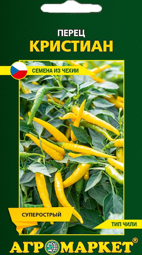 Семена перца острого Кристиан АГРОМАРКЕТ 10 штук (31359) – это среднеранний сорт острого перца чили. Длина плода 8-9 см, желтого цвета, толщина стенки 2 мм. Очень острый вкус – 50-60 тыс. единиц жгучести Сковилла. Используется для потребления в свежем виде, сушки и цельноплодного консервирования. Предназначен для выращивания в открытом грунте и в пленочных теплицах.Семена высевают в кассеты или в рассадные ящики. При температуре 20-250С семена перца дают всходы на 7-9-й день. Лучшей температурой воздуха для роста перца является 18-250С. При температуре 13-150С рост растений задерживается, а при 11-130С совершенно прекращается. Для выращивания в теплицах используют 45-50-дневную рассаду. Она должны быть здоровой, закаленной, коренастой, иметь высоту не более 20-25 см, 8-9 и более настоящих листьев и сформировавшиеся бутоны.