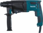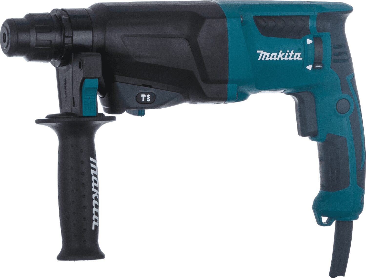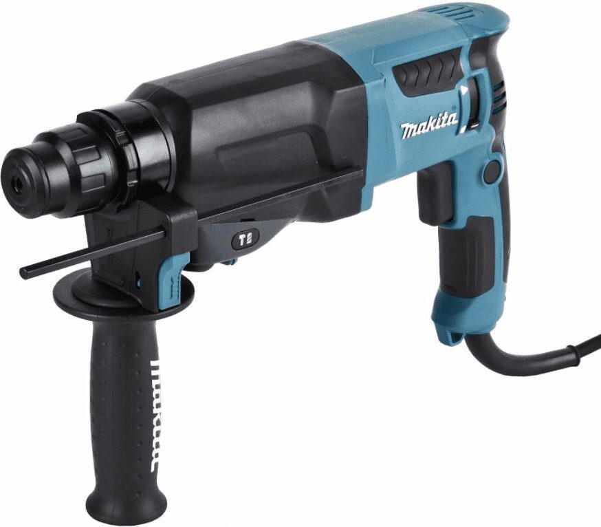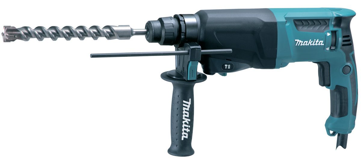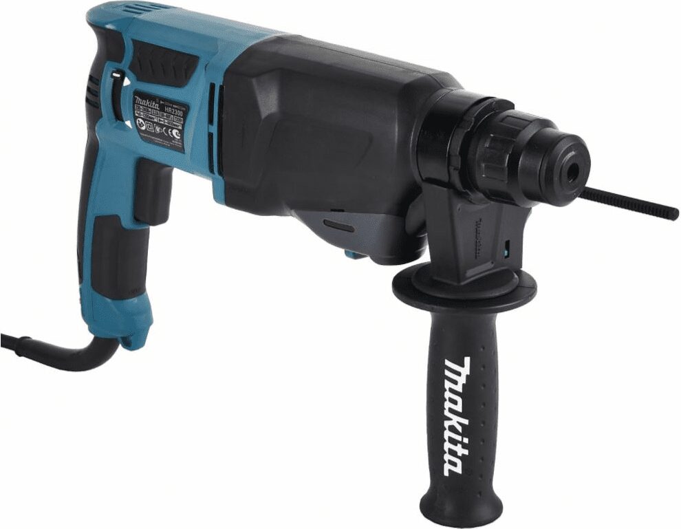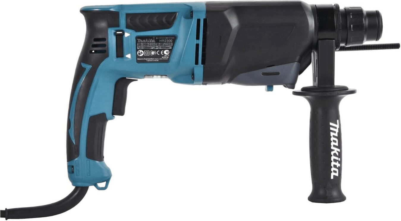 Перфоратор MAKITA HR 2300 (HR2300) предназначен для использования в условиях интенсивной работы на строительной и производственной площадке, угольные щетки защищены от пыли и строительного мусора. Служит для изготовления отверстий в бетоне до 23 мм, стали до 13 мм и дереве до 32 мм. Перфоратор имеет два режима работы: сверление, сверление с ударом, а также расцепляющую муфту предотвращающую рывок перфоратора при заклинивании бура в момент работы и ревес. Большой сальник предотвращает утечку смазки между корпусом двигателя и корпусом редуктора. Рукоятка и корпус редуктора с мягкой резиновой накладкой обеспечивает полный контроль. Перфоратор адаптирован под хвостовик SDS-Plus. Крепление дополнительной рукоятки: Шейка d 50 мм. Длина: 35,6 см. Длина кабеля: 4 м.