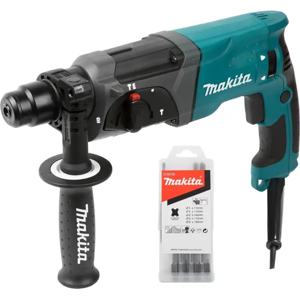 Перфоратор MAKITA HR 2470 X15 (HR2470X15) компактный и эффективный перфоратор. Подходит для простого и ударного сверления. Мощность двигателя составляет 780 Вт, а скорость можно регулировать в диапазоне между 0 и 1100 об/мин посредством переключателя. Энергия удара 2,4 Дж и оптимальный диапазон сверления 8–18 мм в бетоне. Макс. диаметр сверления 24 мм в бетоне.