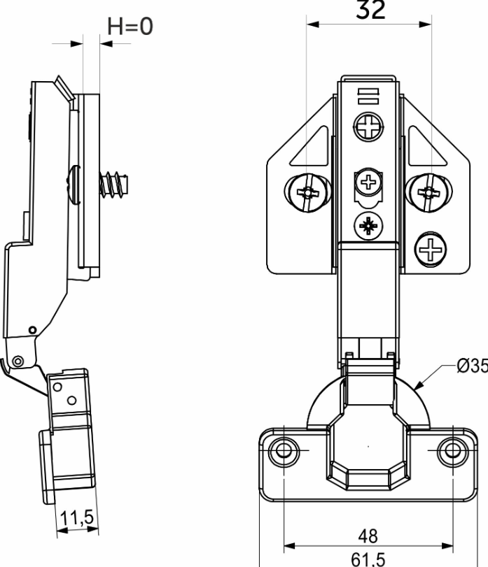 | В комплекте | петля – 1шт., заглушка – 2шт., еврошуруп – 2шт., саморез – 2 шт. |