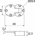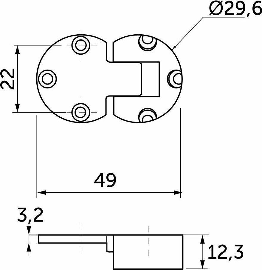 Петля барная AKS (18839) ‒ петля накладная двухчашечная. Угол открывания – 90 градусов, угол в закрытом состоянии – 90 градусов. Регулировка подъема фасада +2 до -1 мм. Для использования с ДСП от 16 до 19 мм. Петля разборная на две части, для простоты монтажа фасада на готовое изделие. Материал – сталь.