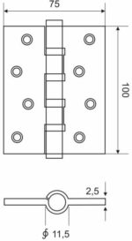 Петля дверная врезная 100х75 мм ARNI SB золото выполнена из стали с гальваническим покрытием, защищающим от коррозии. Максимальная нагрузка на 2 петли до 40 кг.