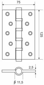 Петля дверная врезная 125х75 мм ARNI SN 2 штуки матовый никель выполнена из стали с гальваническим покрытием, защищающим от коррозии. Максимальная нагрузка на 2 петли до 60 кг.