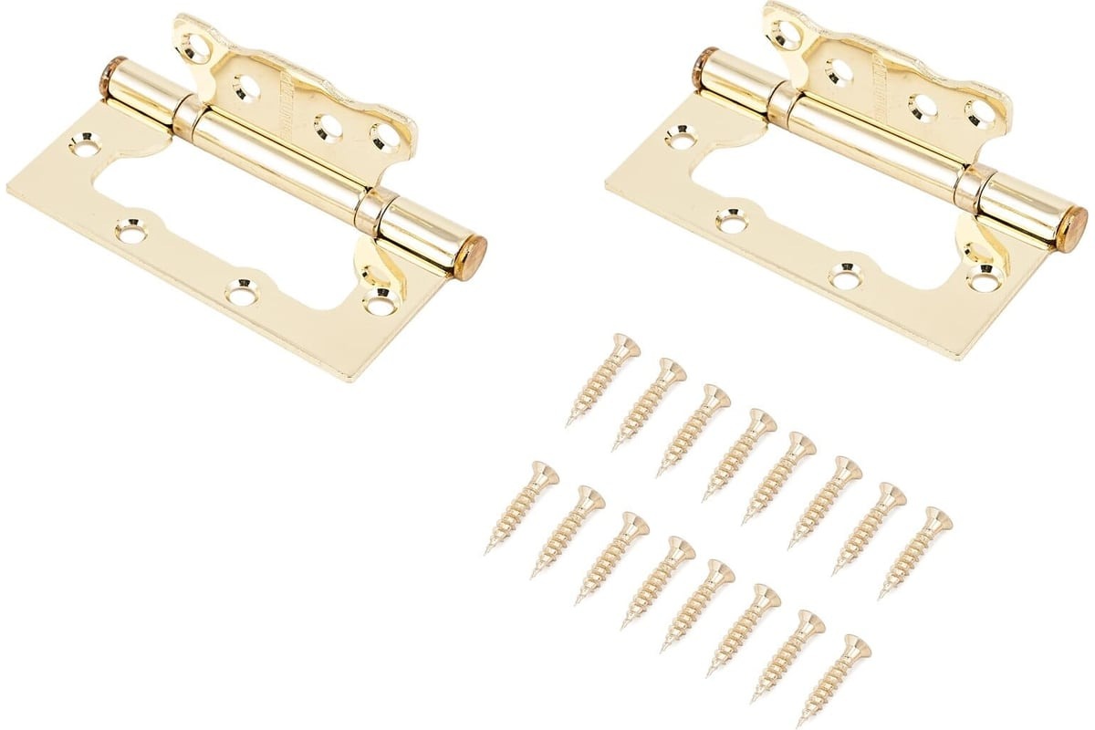 Петля дверная бабочка накладная 100х75 мм АЛЛЮР 2BB SBP матовая латунь 2 штуки (7501) – это универсальная петля, предназначенная для установки на левые и правые двери без необходимости врезки. Она изготовлена из стали с гальваническим покрытием. В конструкции предусмотрены два подшипника и плоский колпачок.