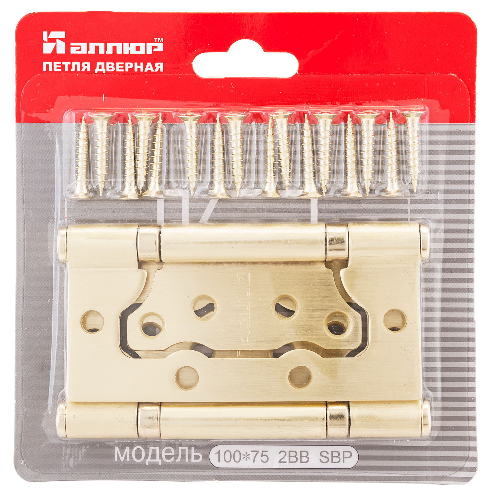 Петля дверная бабочка накладная 100х75 мм АЛЛЮР 2BB SBP латунь 2 штуки предназначена для установки на левые и правые двери. Выполнена из стали с гальваническим покрытием.