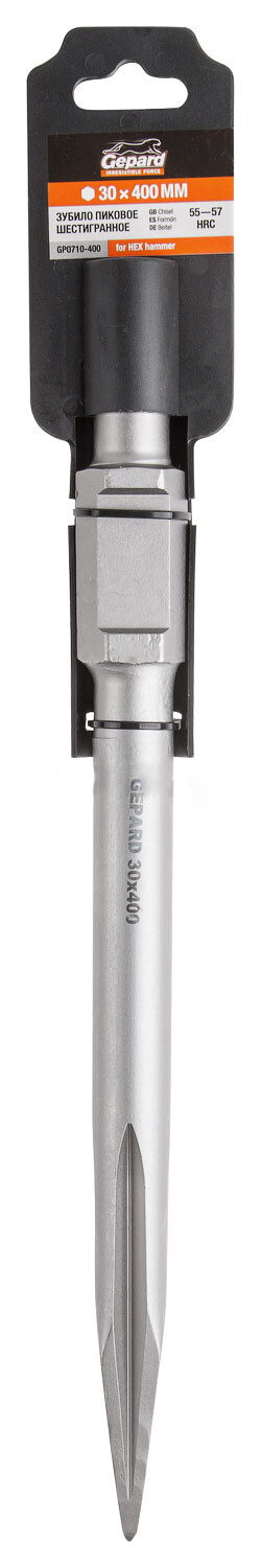 Зубило пиковое шестигранник 30 мм 400 мм GEPARD (GP0710-400) предназначено для долбления и демонтажных работ по бетону и кирпичу, слома бетонных покрытий, пробивания отверстий и штробления. Используется в перфораторах и отбойных молотках с типом крепления НЕХ (шестигранник).