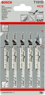 Пилка для электролобзика BOSCH Clean for Wood T101D 5 штук (2608630032) позволяет выполнять чистые прямые пропилы в древесине. Гладко шлифованные зубья с телом сужающейся формы обеспечивают ровный результат. Полотно из высокоуглеродистой стали подходит для пиления мягкой древесины и неабразивных древесных материалов. Крупный прогрессивный шаг зубьев (4–5,2 мм) полотна позволяет пилить древесные материалы толщиной 10–45 мм. Для лобзиков с системами крепления с Т-образным хвостовиком.