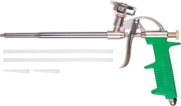 Пистолет для монтажной пены ВОЛАТ (36020-01) используется в монтажных работах. Конструкция оснащена никелированным корпусом и курком, а также латунным игольчатым клапаном, что гарантирует долговечность и эффективность инструмента.