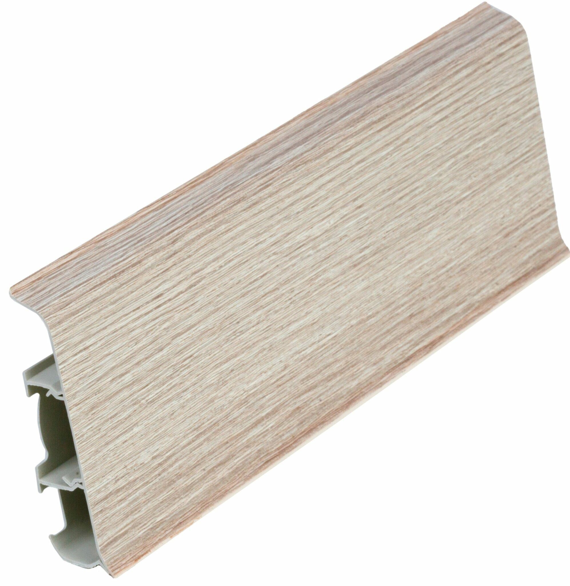 Плинтус напольный ПВХ IDEAL Деконика 85 мм 2,2 м 265 Клен патина имеет продуманный соверменный дизайн с кабель каналами и цельной лицевой частью. Преимещуством является легкий монтаж и возможность быстрой замены кабелей без демонтажа плинтуса. Предусмотрено защитное покрытие, которое продлевает срок службы.DECONIKA – современный продукт, сочетающий в себе многолетний опыт Ideal и экологичные материалы. Коллекция разнообразна различными декорами, что позволяет подобрать плинтус к интерьеру.