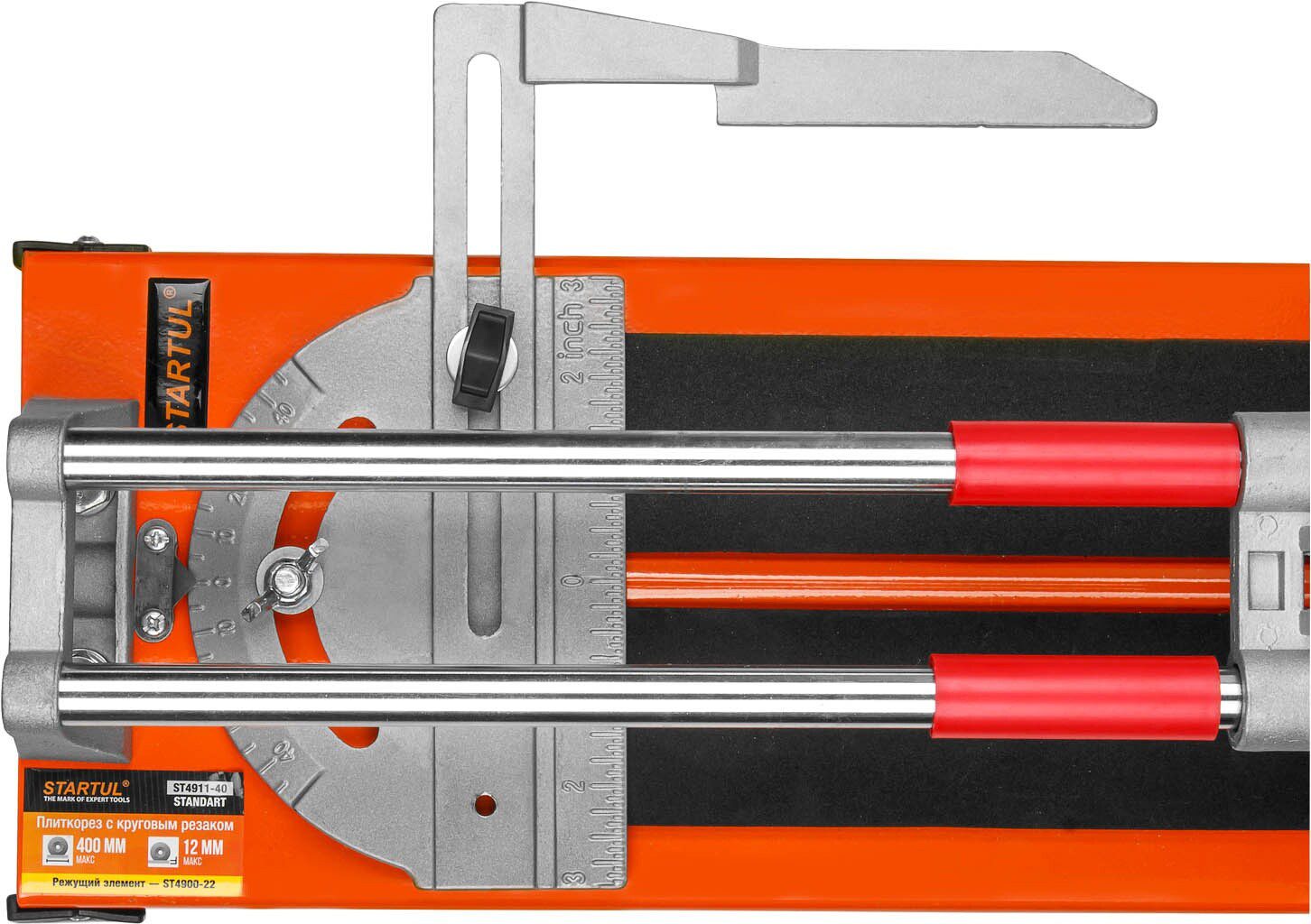 Плиткорез с круговым резаком STARTUL STANDART ST4911-40 предназначен для резки облицовочной плитки. Конструкция плиткореза оснащена градуированной шкалой для разметки продольных линий и режущим элементом 6 мм. Для осуществления плавного и точного реза каретка плиткореза установлена на подшипники. Оснащен специальной дополнительной конструкцией для прорезания отверстий диаметром от 30 до 80 мм.