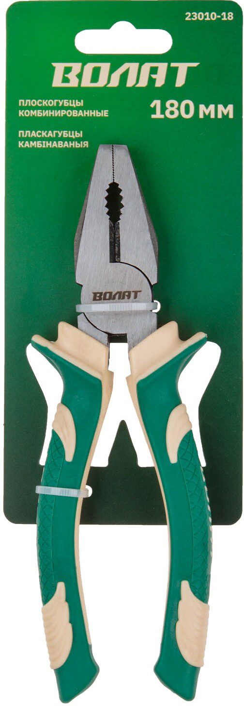 Плоскогубцы 180 мм комбинированные ВОЛАТ (23010-18) применяются для захвата и фиксации плоских и круглых предметов, для перекусывания проволоки средней твердости. Рабочие поверхности инструмента закалены и обладают высокими прочностными характеристиками.