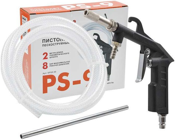 Пневмопистолет пескоструйный SKIPER PS-9 (SPS-9.00) используется при выполнении работ по очистке поверхности от грязи, ржавчины, краски, стойких загрязнений. Для работы применяется промытый кварцевый песок или специальная абразивная смесь.