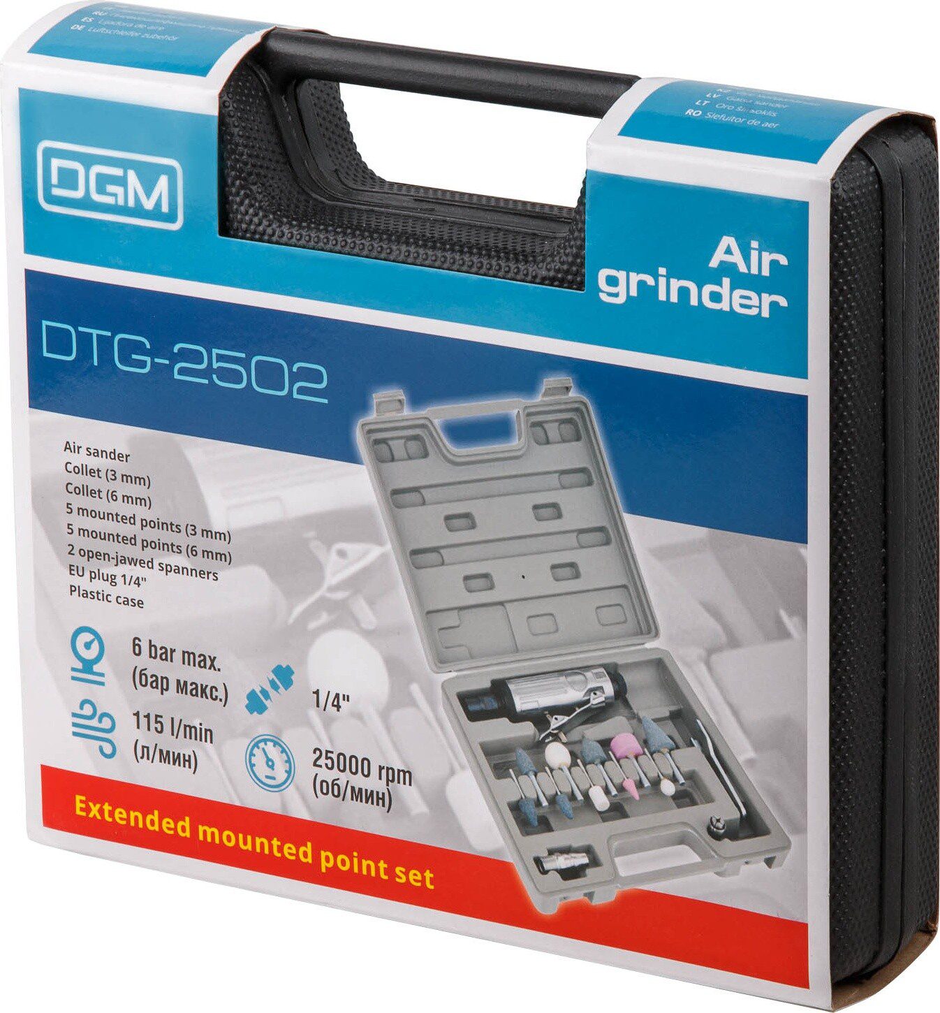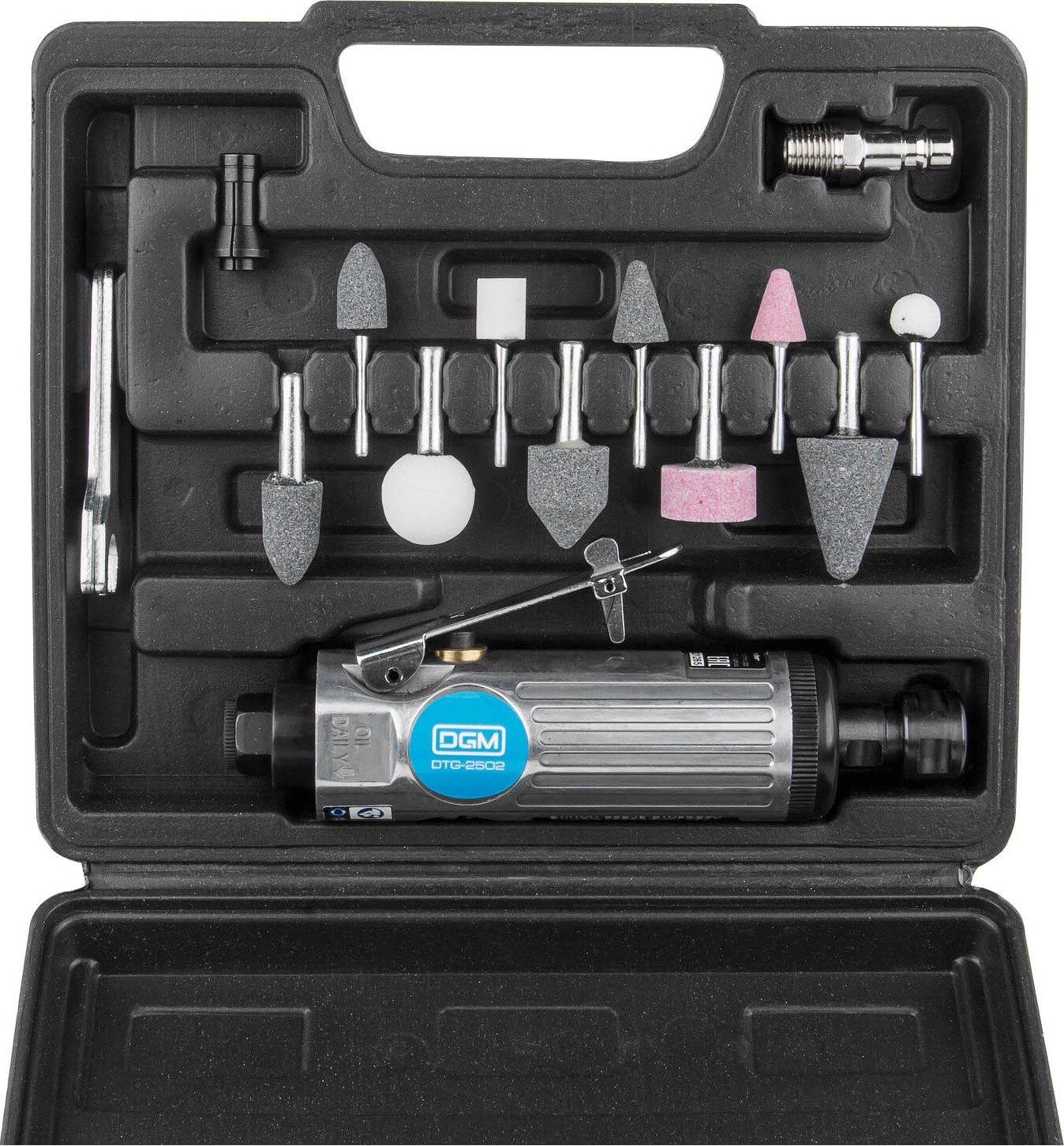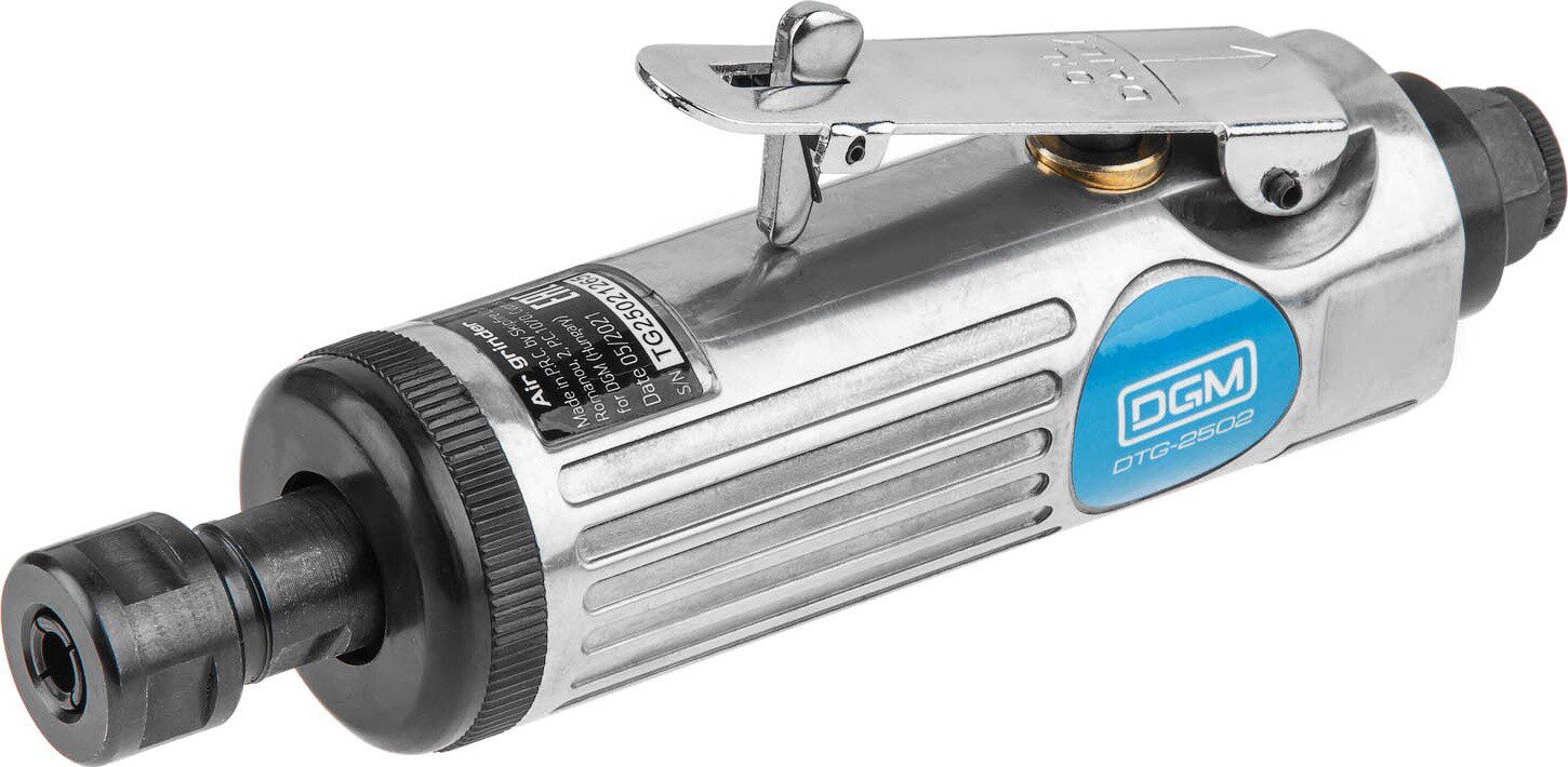 Пневмошлифмашина прямая DGM DTG-2502 с двумя размерами цанг. Алюминиевый корпус. Чемодан для хранения.