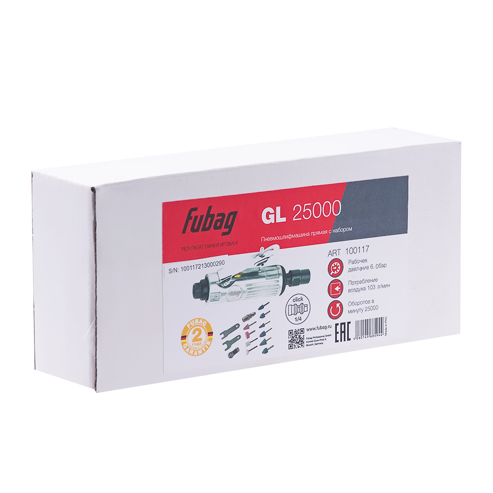 Пневмошлифмашина прямая FUBAG GL25000 (100117) купить в сети строительных магазинов Мастак