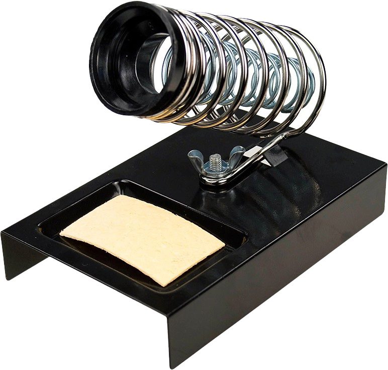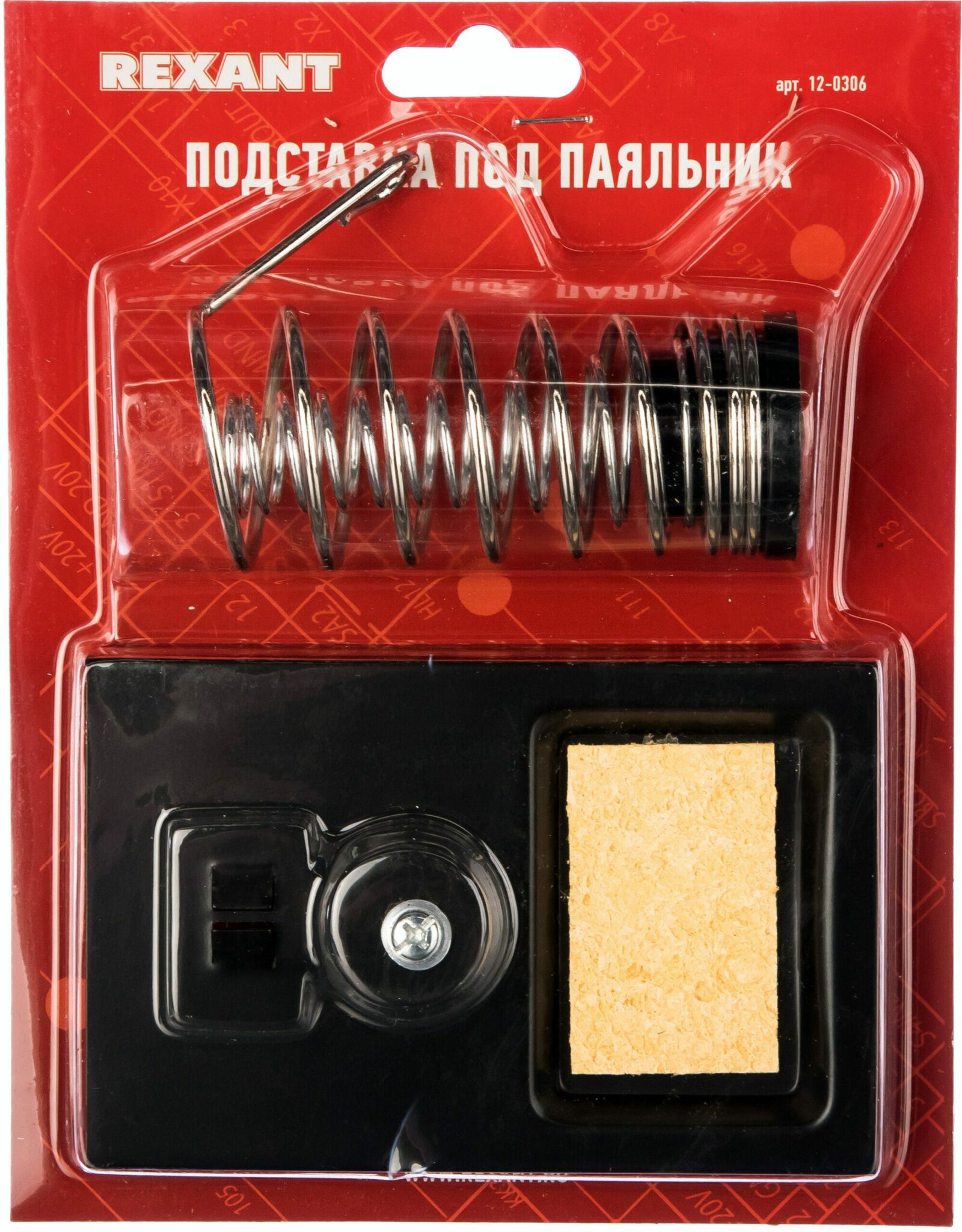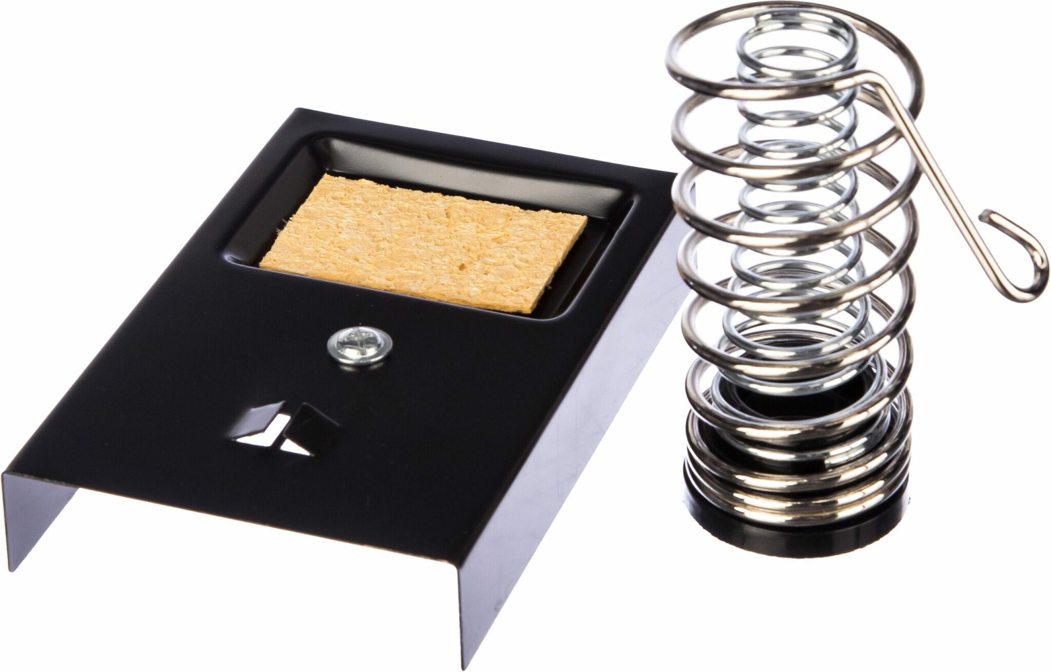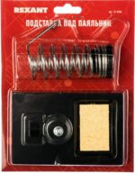 Подставка для паяльника REXANT (12-0306) предназначена для безопасного хранения паяльника при нагревании, в промежутках между использованием и охлаждении. Выполнена из витой хромированной конусообразной пружины и металлической платформы с ложементом под губку для очистки жала паяльника от остатков припоя. Губка для очистки жала паяльника в комплекте. Паяльник легко и удобно помещается в направляющую.