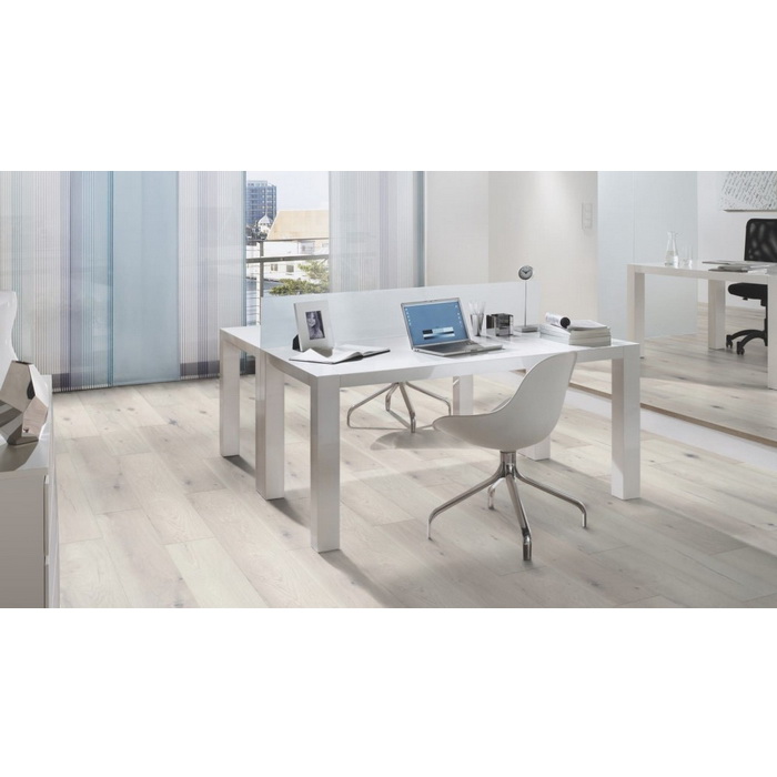 Ламинат KRONO ORIGINAL Variostep Classic 32 кл Дуб Госсамер (К271) привлекателен благодаря не только высочайшему качеству и простейшей укладке, но и скошенной кромке панели, которая передает удивительный шарм настоящего деревянного пола. Такие швы воссоздают эффект деревянных половиц и волшебным образом меняют ощущение пространства