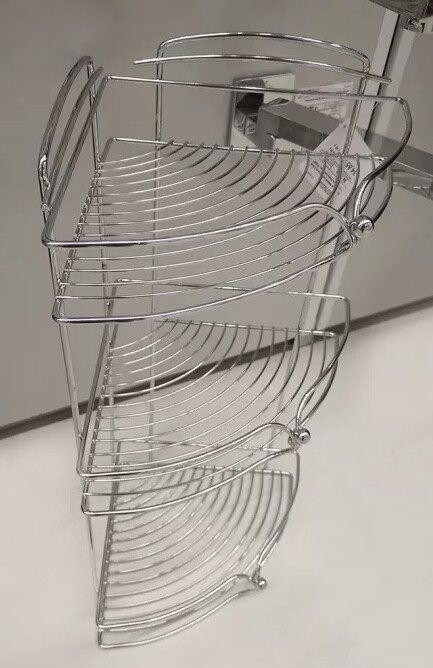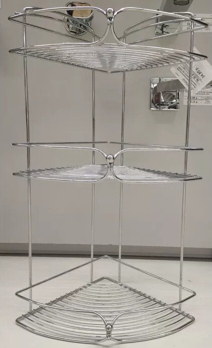 Полка для ванной угловая DOMINADO (W4437) – угловая 3-х уровневая полка из стали с хромовым покрытием со сквозными отверстиями для крепления. Имеет решетчатое основание, которое пропускает излишнюю влагу с душевых предметов.
