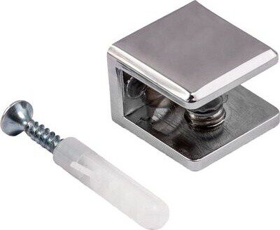 Полкодержатель AKS для стекла АК104 22x22x18 мм хром (64145) ‒ полкодержатель для стекла, регулируемый. Используется для монтажа стеклянных полок толщиной 8-10 мм.